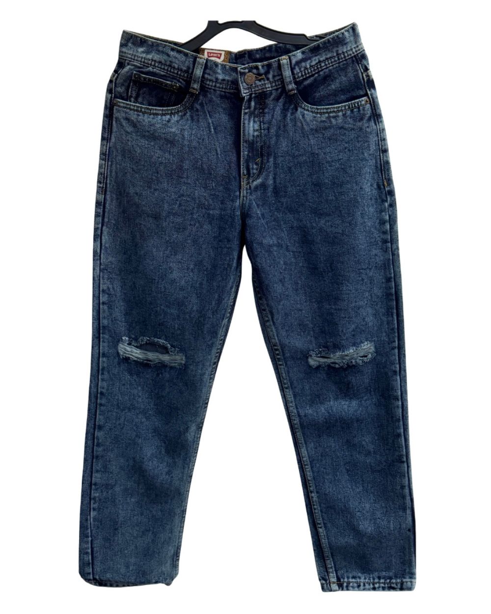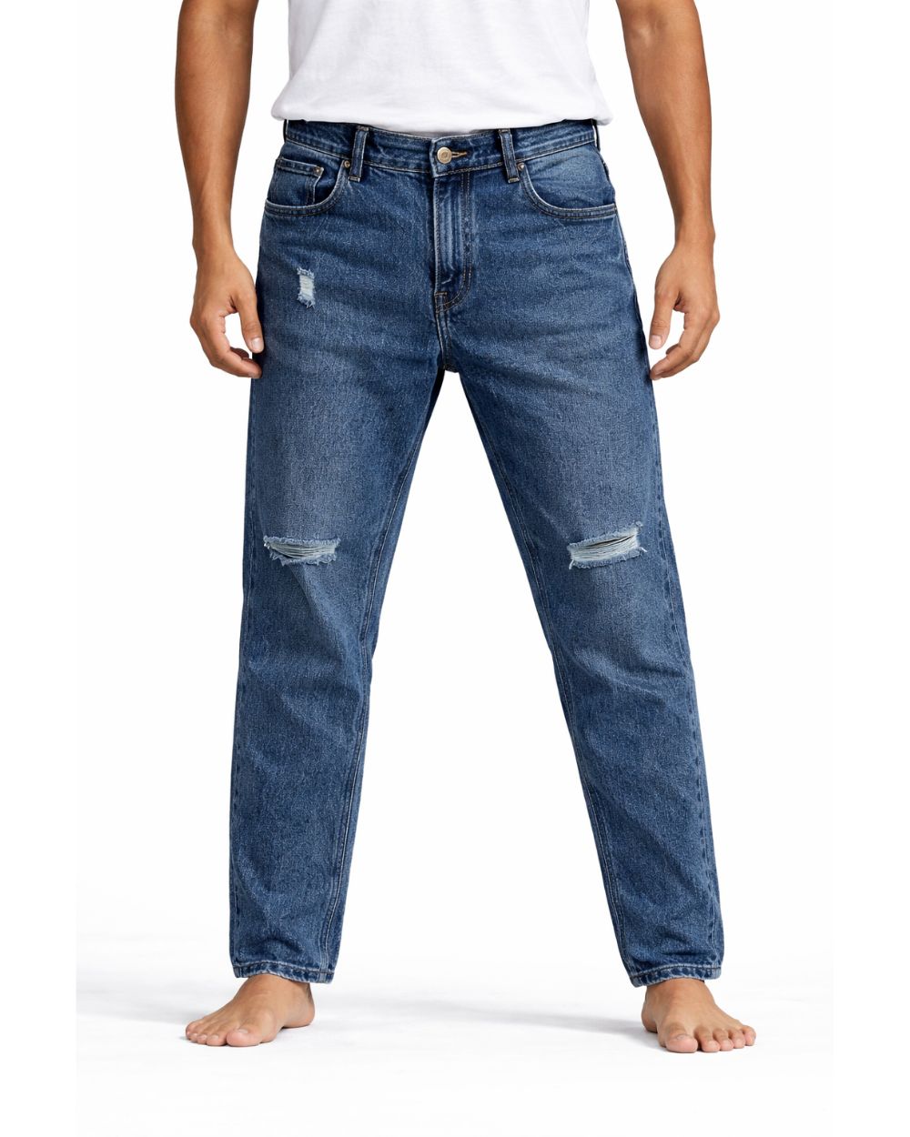 Classic Straight Fit Distressed Blue Denim Jeans