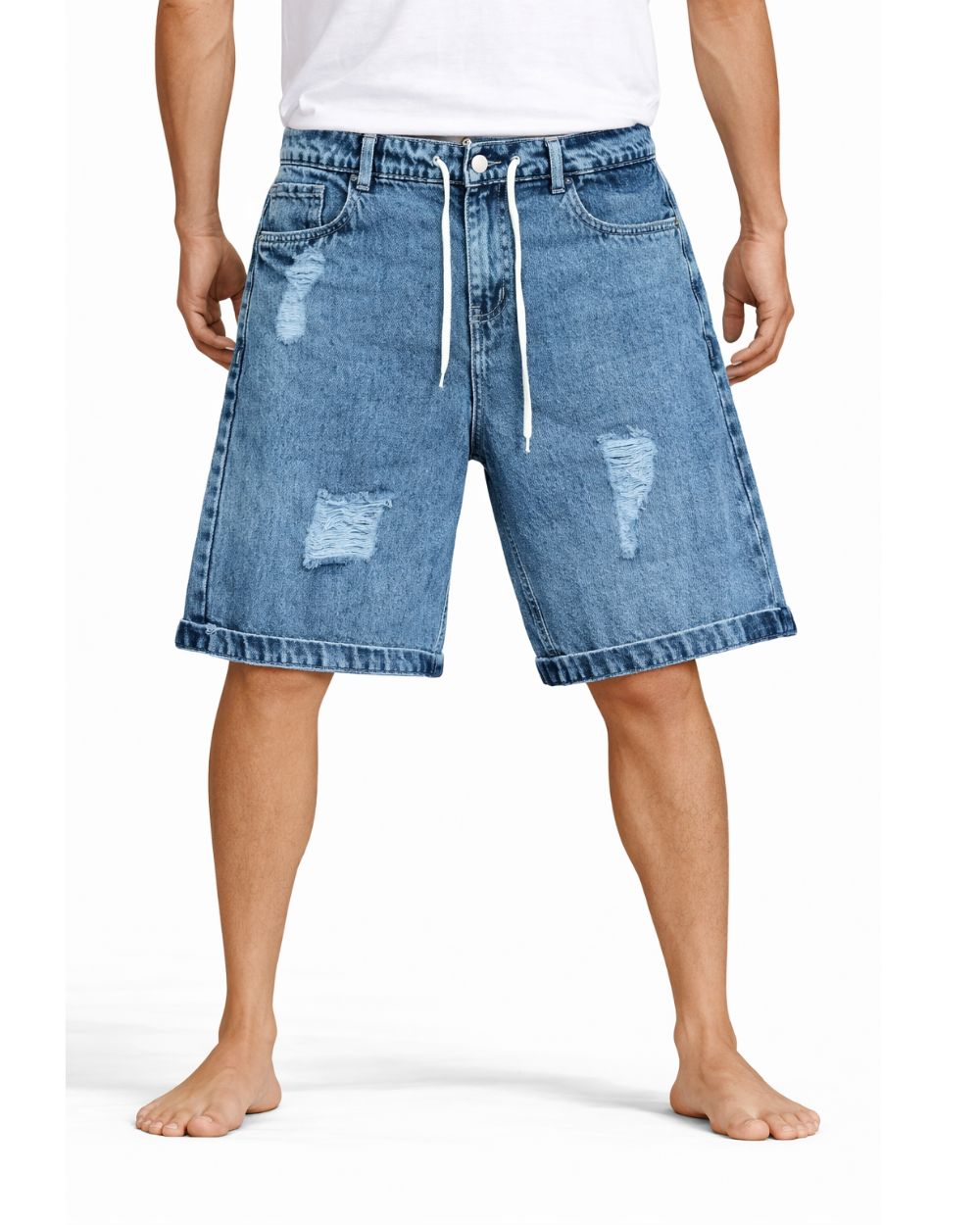 Distressed Blue Denim Drawstring Shorts