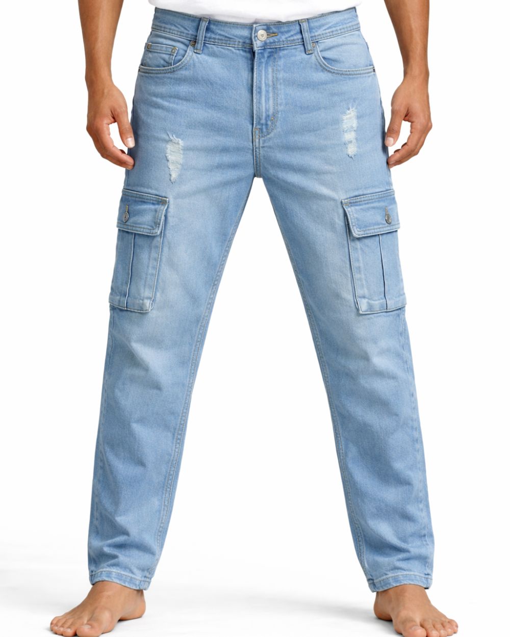 Double Pocket Distressed Light Wash Denim Jeans