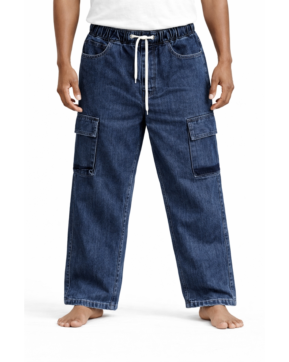 Wide Hem Denim Cargo Jogger (Big Fold)