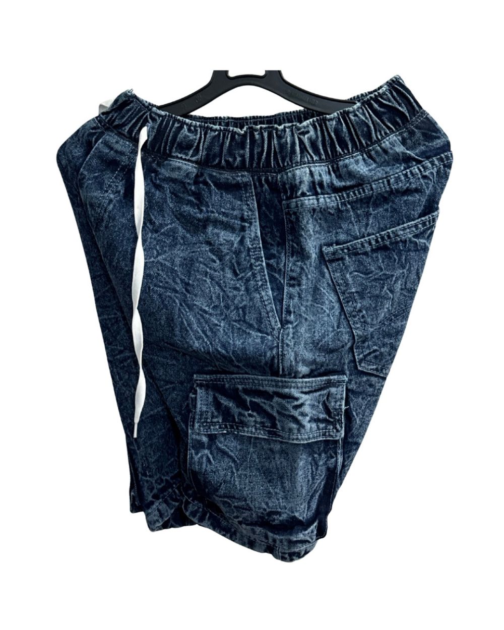 Featuring an elastic waistband and adjustable drawstring, they provide a flexible, secure fit for all-day comfort. The spacious side cargo pockets add utility and a modern street-inspired look, while the classic back pockets maintain a timeless denim finish.